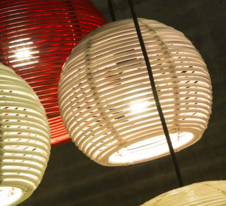 La structure en rotin de la suspension lumineuse Sangha diffuse la lumière de manière agréable en donnant l’impression d’être vraiment chez soi.