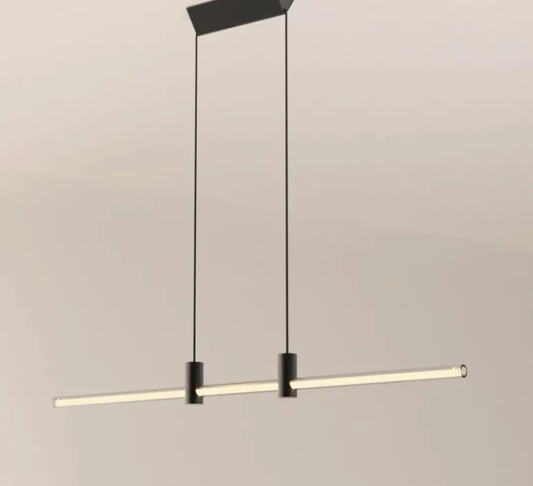 RA Line se compose donc de verre et de métal noir afin d’apporter une touche de finesse et d’élégance grâce à ses composants de haute qualité. La suspension mesure 140cm de longueur avec un câble de 2,7m.
