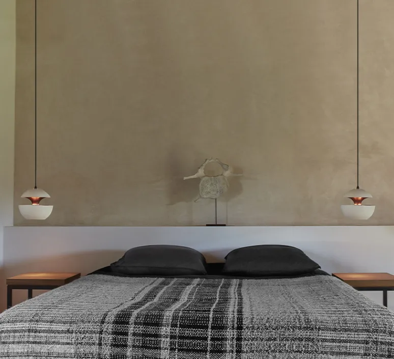 Here comes the sun 175 est une suspension très aérienne qui séduit par son coloris blanc et son intérieur en cuivre. Elle apporte chaleur et douceur à votre intérieur grâce à une lumière douce où l’ampoule est complétement intégrée dans le corps de la lampe.