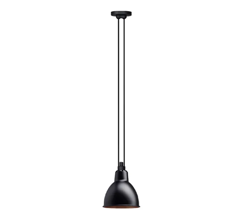 Modèle présenté : N°322 + abat-jour rond L noir/intérieur cuivre.
