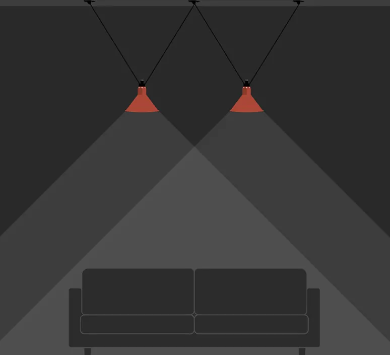 Des accessoires permettent de composer en ligne ou sur quatre axes de multiples compositions à partir d’une seule source d’électricité, ainsi que de déporter la suspension à un endroit précis, peu importe la position de l’alimentation électrique.