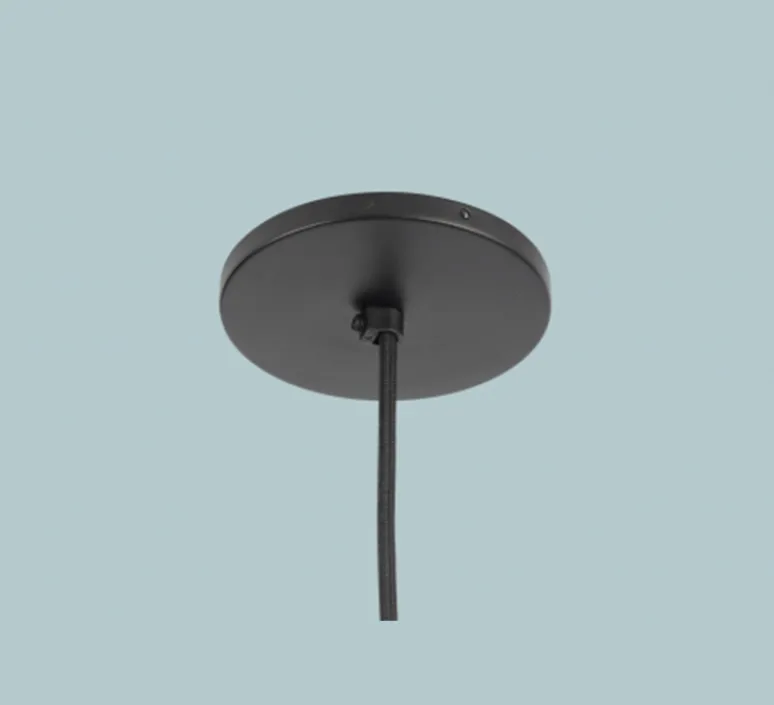 La suspension Ons est fournie avec sa rosace noire discoïde. Son câble possède une longueur de 2 mètres. L’ampoule n’est pas incluse (E27).