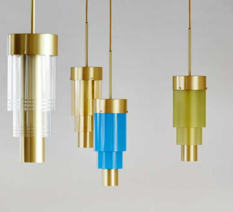 La suspension A-Spire existe dans différentes finitions parmi lesquelles on retrouve un bleu comme celui utilisé dans les verreries du 19ème siècle, un blanc brillant classique mais aussi les couleurs « signature » de la marque telles que or fumé, gris fumé et transparent strié