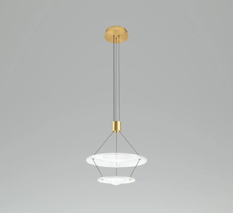 Ce luminaire est équipé d’une source LED intégrée, avec une intensité de 2700K et 830 lumens. La lumière est dimmable, permettant d’ajuster l’ambiance lumineuse selon les besoins. Venise se compose de deux verrines mesurant, pour la première, 38 cm de diamètre pour 4,6 cm de hauteur, et la plus petite mesure 23 cm de diamètre et 3,5 cm d’épaisseur. Les différents câbles noirs de 1,5 mètre chacun permettent une installation élégante et personnalisée.