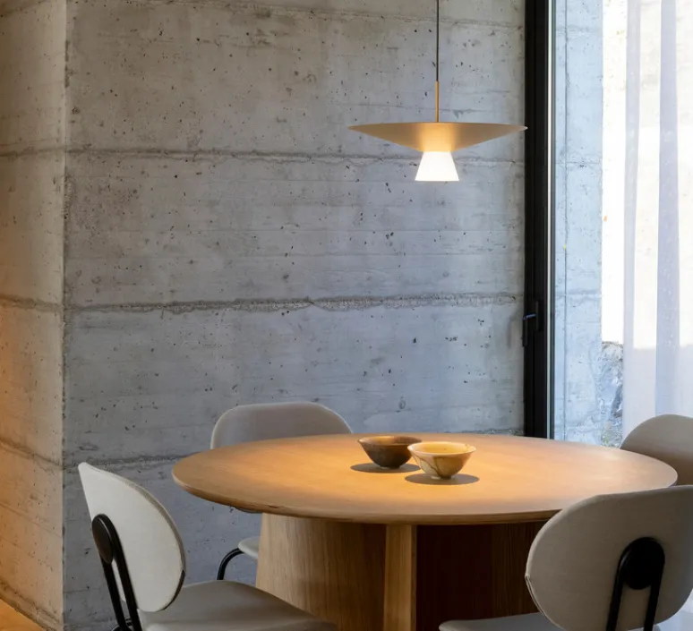 Belt est une suspension créée à partir de formes simples qui se complètent. La combinaison judicieuse d’un écran conique et opaque, qui procure une sensation de stabilité et de solidité, et d’un élément en verre, qui laisse échapper la lumière de manière subtile et élégante, crée un équilibre visuel qui capte l’attention.