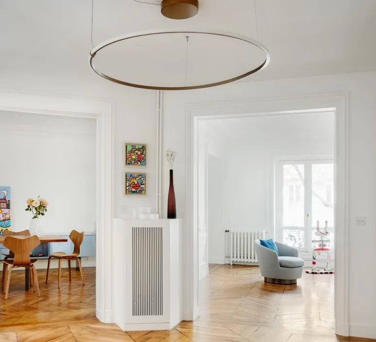 Au-dessus d’une table, d’un meuble dans un salon ou salle à manger, Olympic F45 bronze apporte à sa façon de l’élégance et de la subtilité. Cette suspension diffuse une lumière douce et agréable parfaite pour rendre un intérieur chaleureux.