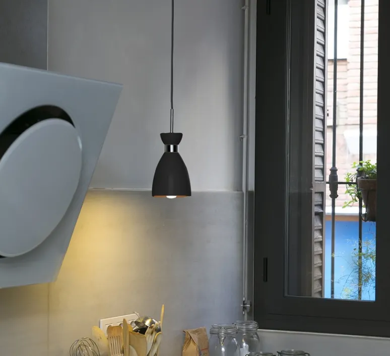 Très tendance, cette suspension apportera un effet rétro et industriel à l’ensemble de votre pièce. Inspiré des années 60, ce luminaire en métal se marie très bien avec les ambiances chics et élégantes. La collection Retro se décline en deux coloris, le cuivre et le noir. Suspendue seule, en grappe ou en ligne, la lampe sera parfaite pour illuminer votre salon, salle à manger ou autres pièces de la maison. Bien que dotée d’un esprit vintage, elle propose un joli mélange entre le style industriel et contemporain.