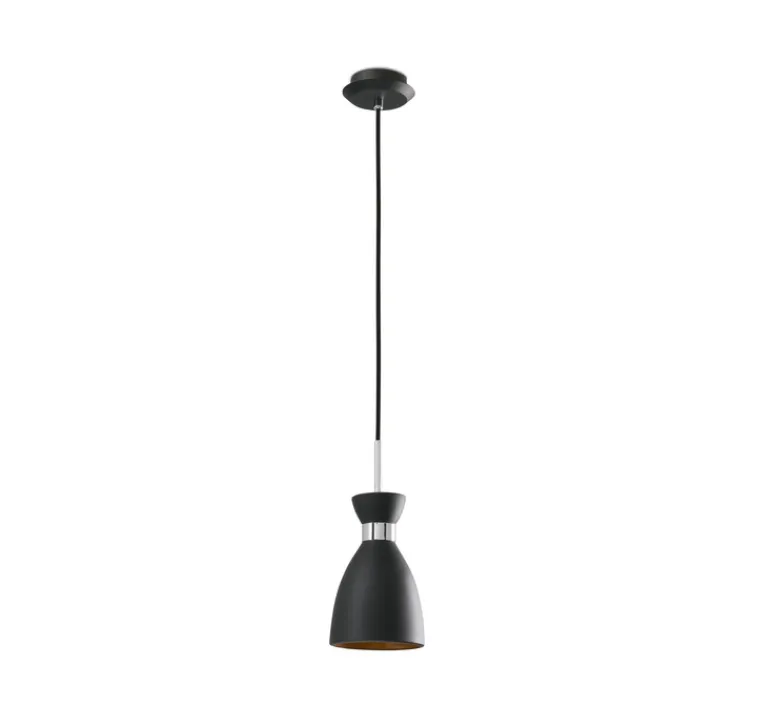 La suspension Retro noire et son intérieur or, a été designée par Manel Llusca pour la maison de luminaires espagnole Faro.