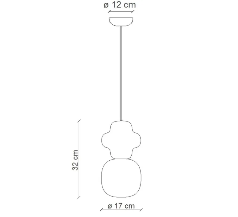 La suspension mesure 17cm de diamètre pour une hauteur de 32cm. La câble d’alimentation mesure 1,2m et la rosace est de la même couleur que la céramique.