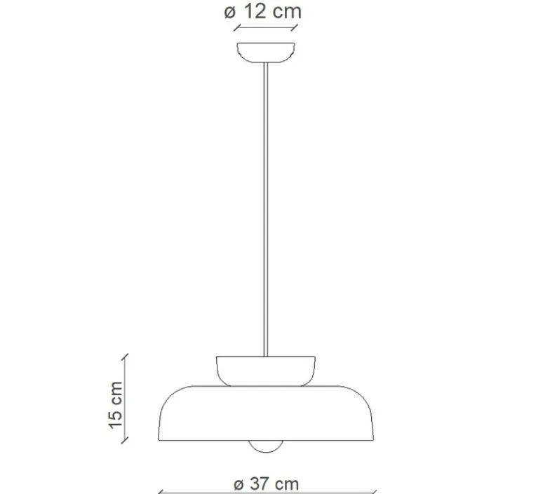 La suspension mesure 37 cm de diamètre et 15 cm de hauteur. La source lumineuse n’est pas fournie, nous recommandons une ampoule de type E27, 53W max.