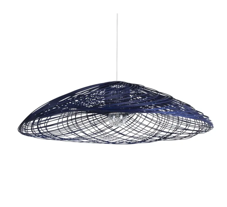 Le designer Elise Fouin a réalisé la suspension « Satélise » bleu marine, édité par la maison d’édition Forestier.