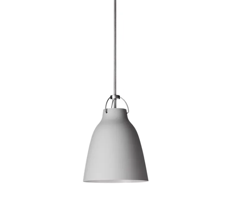 Voici la suspension Caravaggio Matt, finition gris 25, imaginée par Cécile Manz pour la marque danoise Fritz Hansen.