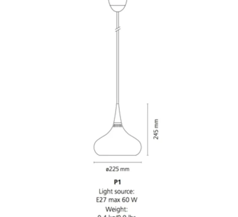 La suspension utilise une ampoule, non-fournie, d’une puissance 60 Watts et de culot E27.