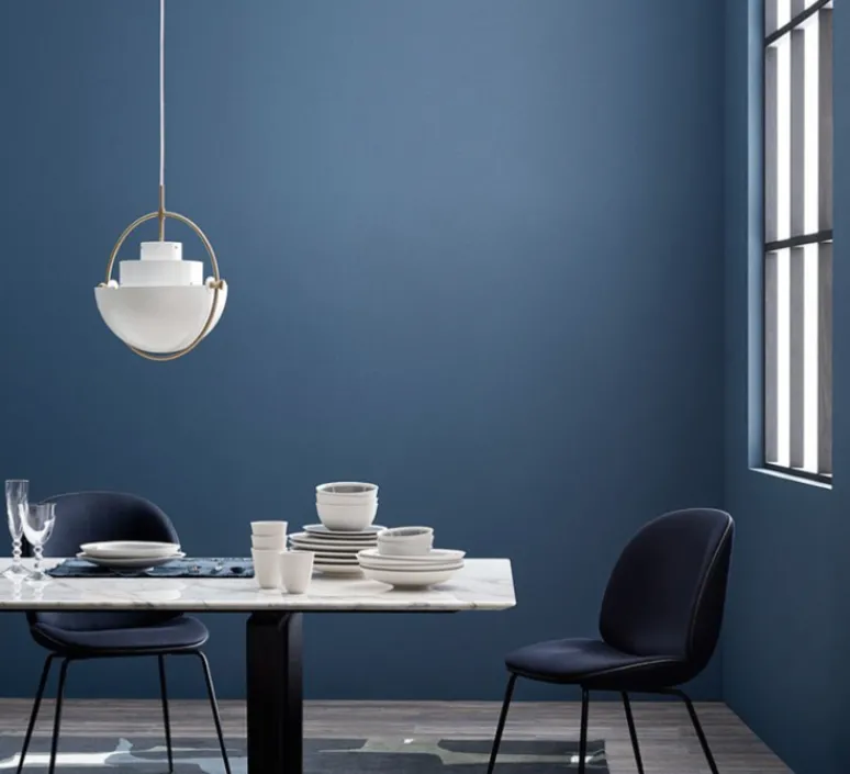 La maison d’édition Gubi réédite la célèbre suspension Multi-Lite, laiton et blanc imaginée par Louis Weisdorf en 1972.