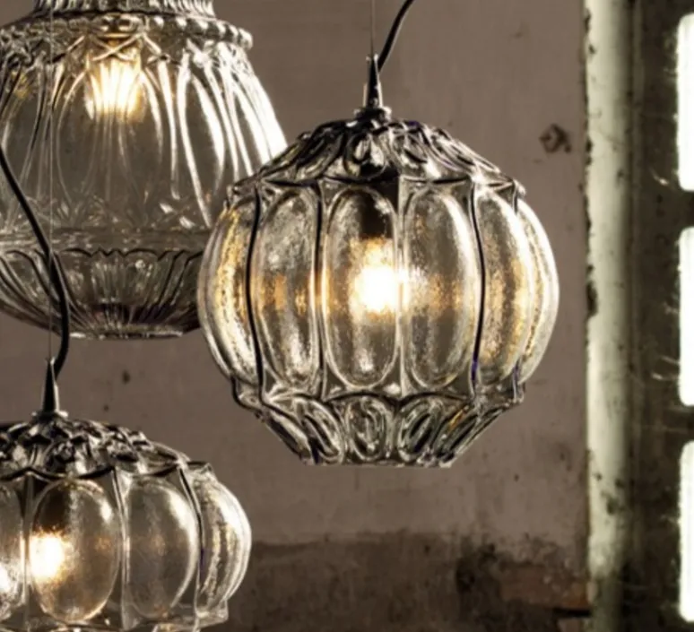 Designé par le talentueux Edmondo Testaguzza, ce luminaire est entièrement conçu de verre. La suspension est très inspirée par la décoration d’antan… Un look plutôt vintage qui séduit et charme tout en étant décalé.