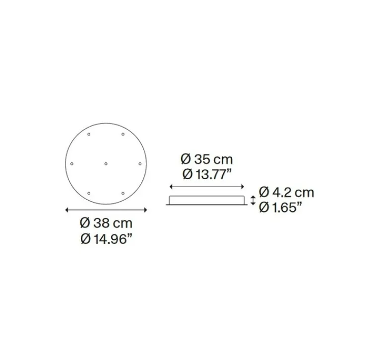 Chaque suspension mesure 8,5cm de diamètre et 21cm de hauteur. La rosace pouvant soutenir les 7 pièces, mesure quant à elle 38cm de diamètre pour 4,2cm de hauteur.