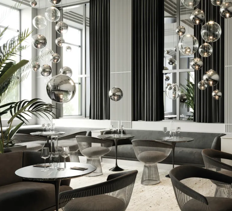 Elle peut être installée seule ou en grappe pour un effet encore plus spectaculaire, grâce à ses différentes tailles et finitions disponibles.