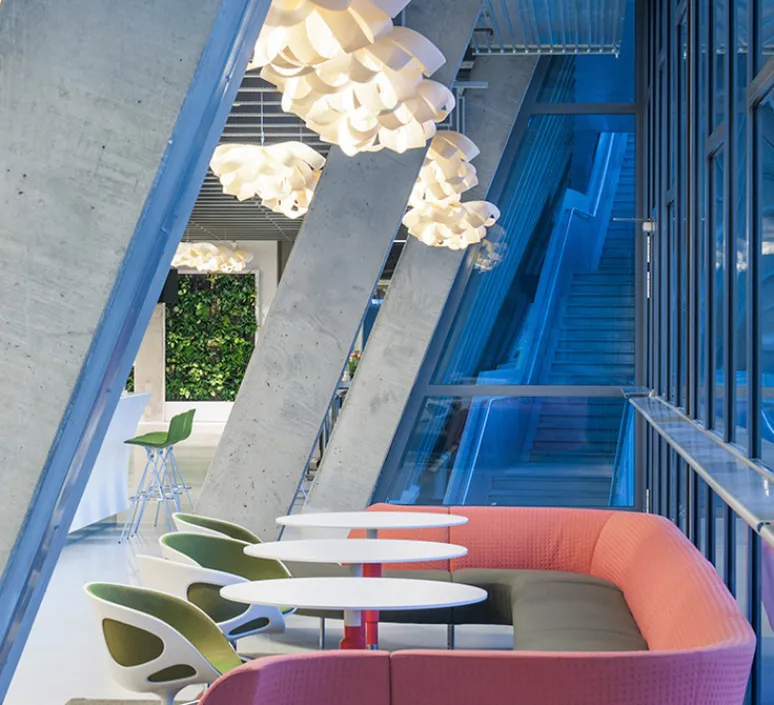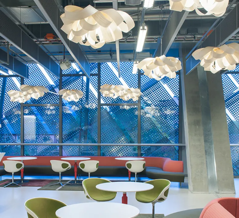 La suspension Agatha ivoire/blanche de Ø76cm a été imaginée par Luis Eslava Studio et éditée par la maison espagnole LZF.
