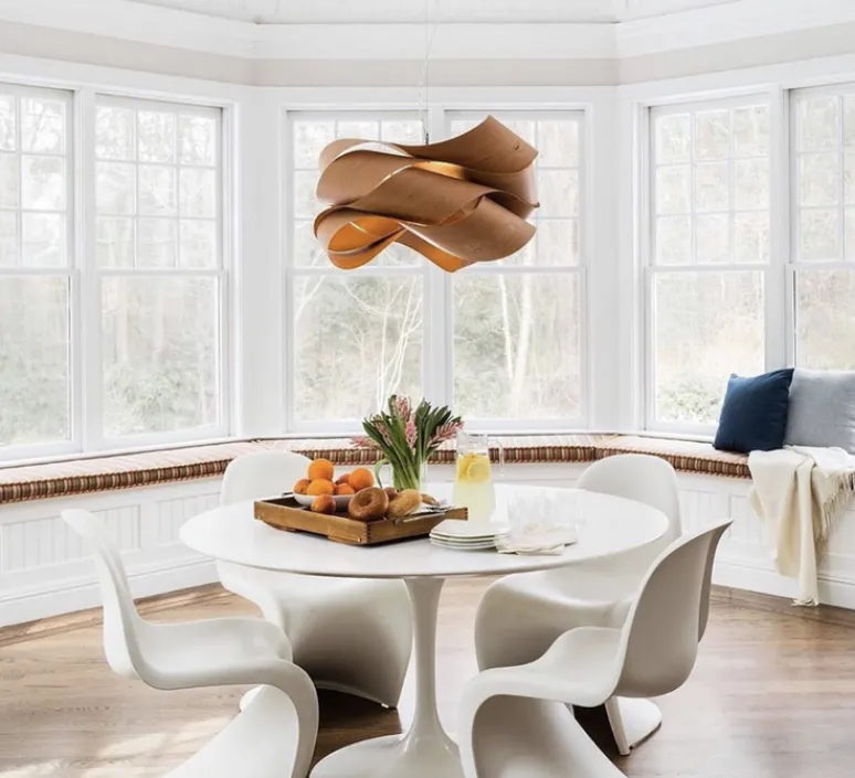 Composée d’une superposition de lamelles de bois courbées et assemblées à la main dans les ateliers LZF de Valence, la lampe Link diffuse une lumière agréable et chaleureuse. Ses courbes épurées et design font de cette lampe tourbillon une véritable source lumineuse design.