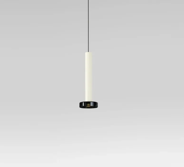 Cette suspension graphique en forme de cylindre est synthétisée à son maximum afin de créer un luminaire minimaliste et moderne. Une lentille imperceptible recouvre la LED et distribue la lumière. La lumière est dirigée vers le bas de manière directe.