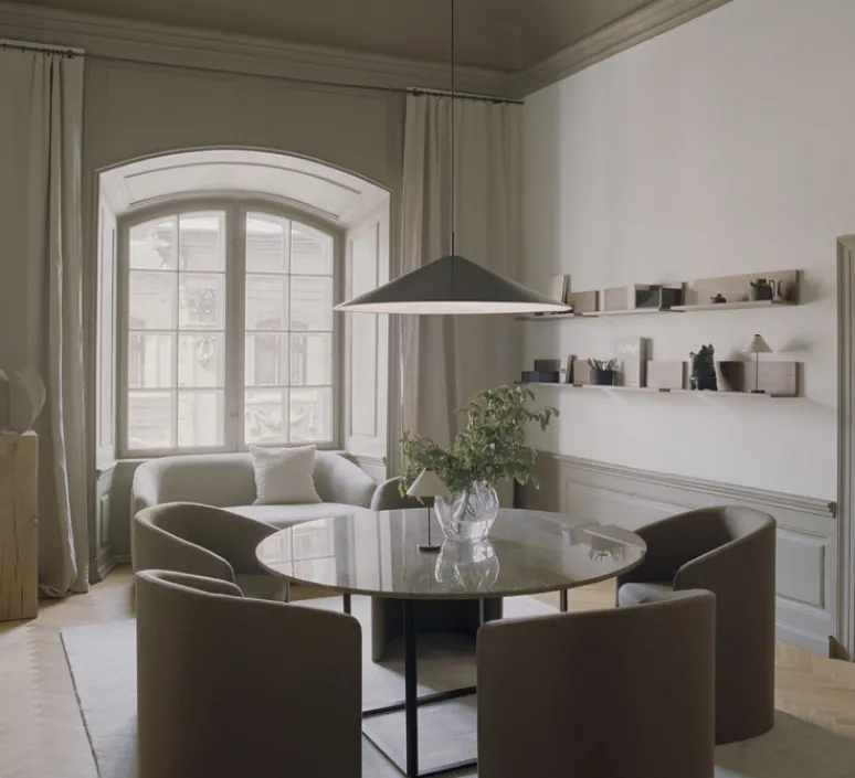 Dotée d’un câble de 3,5 mètres de longueur en noir, la suspension Brolly offre un éclairage direct et dimmable, permettant de moduler l’intensité lumineuse selon les besoins.