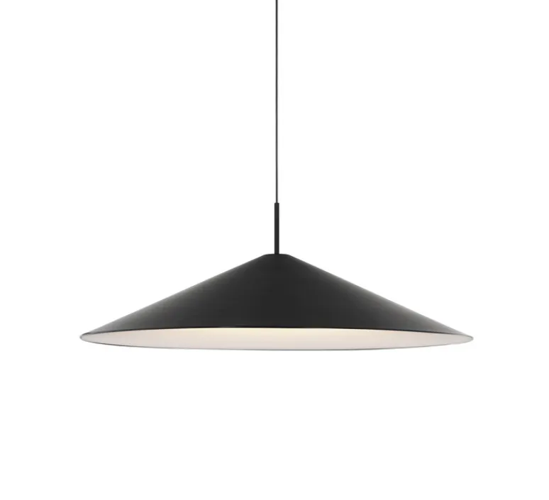 Au style scandinave, la suspension Brolly est fabriquée avec une attention particulière et incarne une esthétique intemporelle. Elle met en valeur la force des formes simples à travers un design conique et épuré. L’abat-jour noir, en aluminium, est proposé dans un diamètre de 90 cm et une hauteur de 32 cm, conférant une présence architecturale marquée. Le diffuseur concave adoucit la lumière émise, créant une ambiance lumineuse agréable sans éblouir.