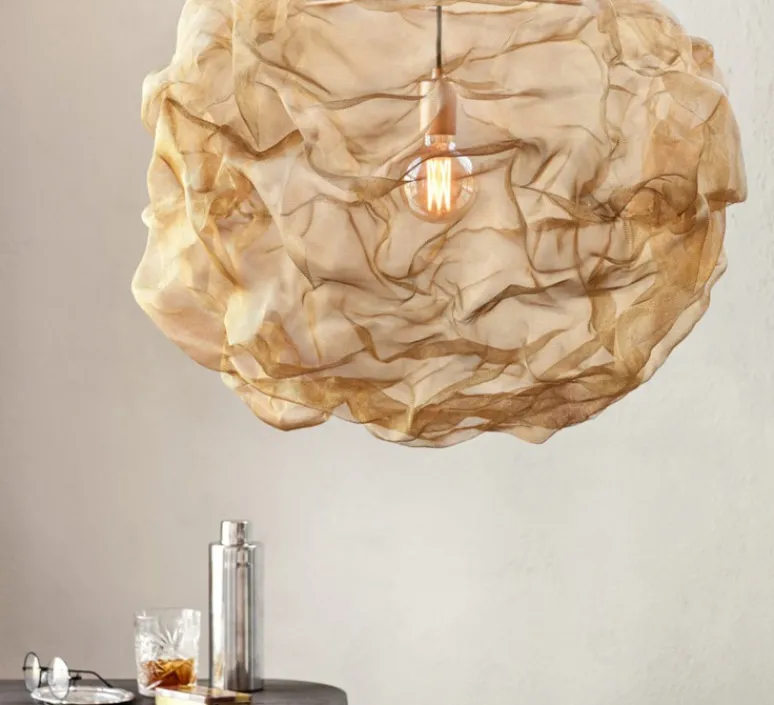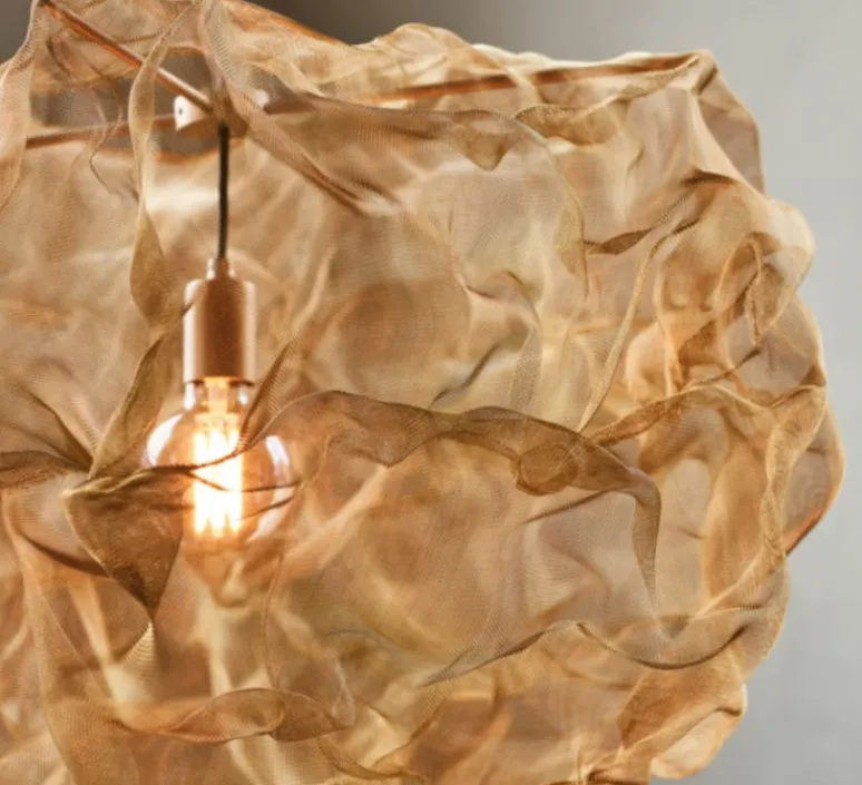 La maille en laiton étincelante a été le point de départ de cette suspension, que le designer a transformé artistiquement en feu de cheminée. La lampe semble flamboyante une minute, puis calme la suivante. Heat est une suspension dynamique qui remplit l’intérieur de créativité et d’imagination.