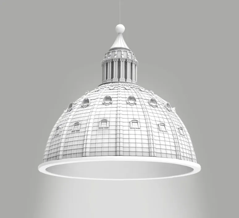 Le duo du studio AMeBE transforme l’une des plus grandes icônes architecturales de la Renaissance italienne en luminaire : ‘’Cupolone’’ (la coupole en dialecte romain). A la fois design et architectural, les créatrices reproduit de façon très réaliste le dôme de la basilique Saint-Pierre de Rome.