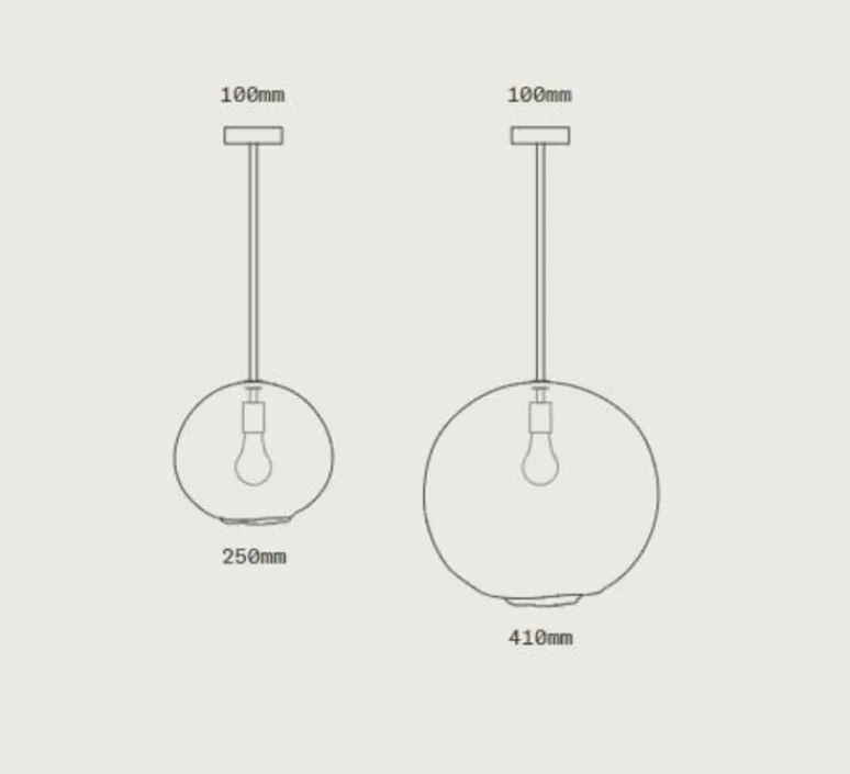 La suspension mesure 10cm de diamètre et 25cm de hauteur. Le luminaire est fourni avec sa source de lumière, ampoule E27 max 60W.