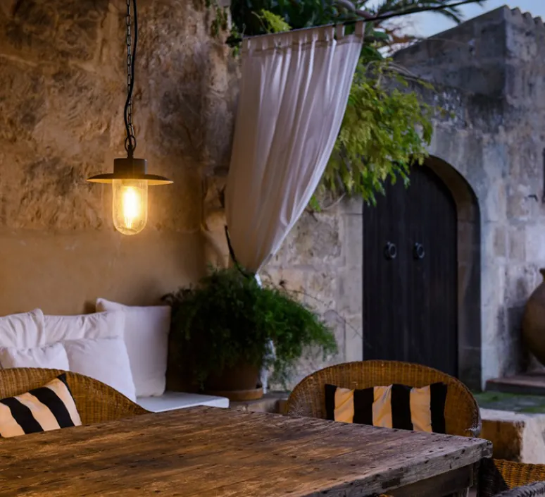 Le luminaire Molat est composé d’un abat-jour en verre en forme de cloche inversé avec un chapeau en aluminium. Moderne et industrielle, la suspension Molat s’adapte à extérieur, que ce soit dans un balcon, une terrasse ou un jardin.