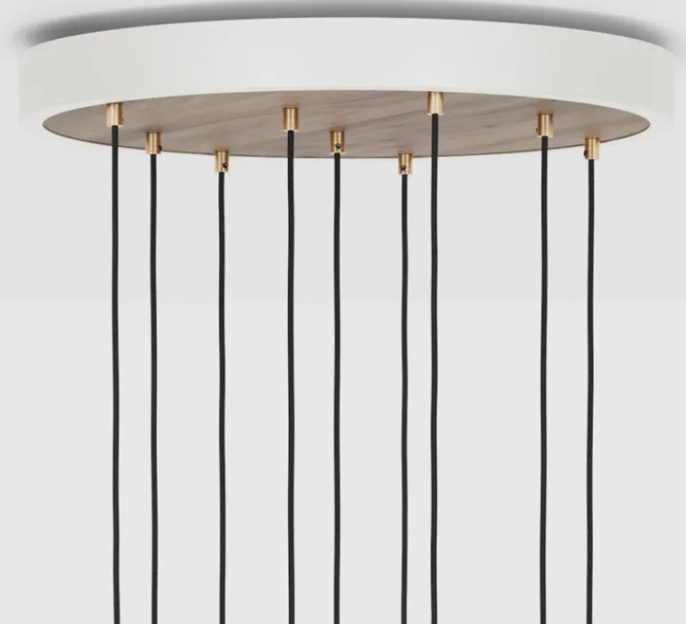 Avec son design, la suspension Nine Pendant + Voronoi II se distingue par ses suspensions en noyer et ses ampoules décoratives Voronoi II. Ce luminaire crée une ambiance chaleureuse et élégante grâce à ses formes organiques et son éclairage doux. L’aspect bois et la finition de la rosace (Ø50,8cm, H5cm) blanche apportent une touche de raffinement, tandis que son installation en tant que pièce centrale dans un salon, bureau ou espace de réception ne manquera pas d’attirer l’attention. Elle s’intègre parfaitement dans des environnements modernes.