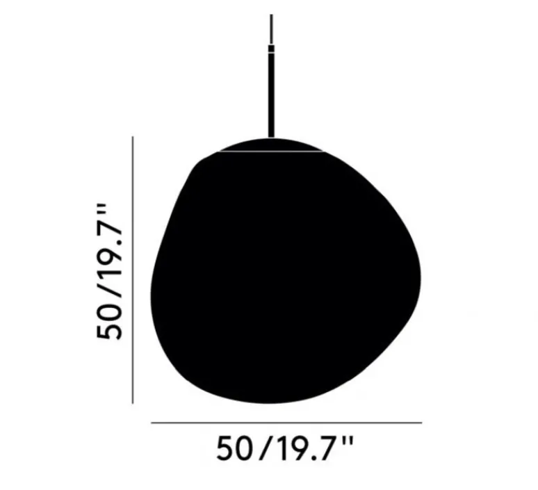 Cette suspension mesure 50cm de hauteur et 50cm de largeur. Le câble transparent mesure 250cm.