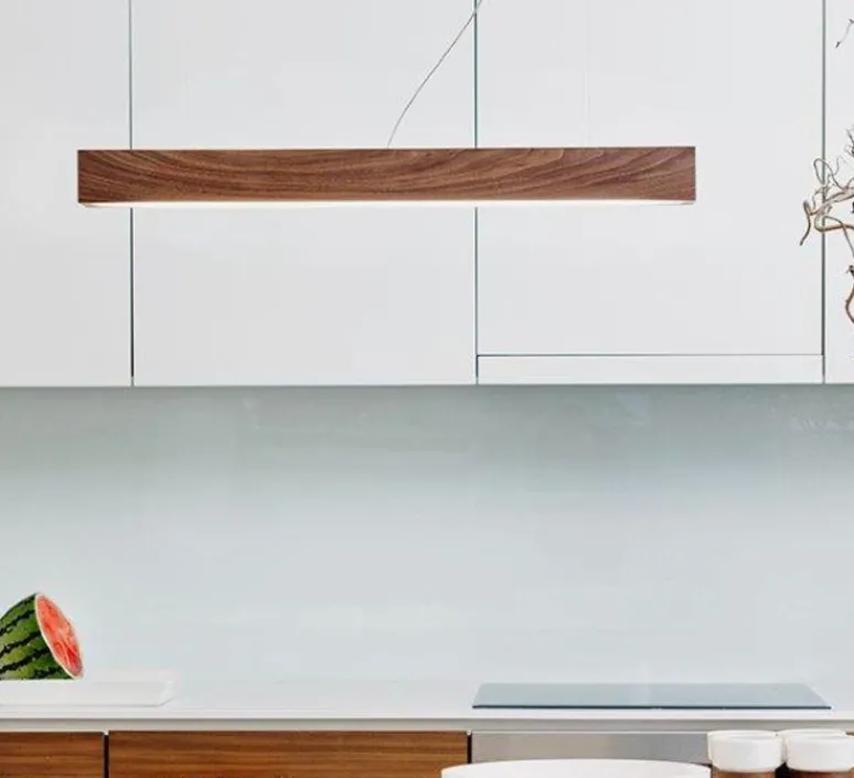 Dans la plus pure tradition scandinave, ce bandeau lumineux aux lignes épurées mêle la douceur du bois (à travers son coeur en noyer) et l’éclairage doux, non éblouissant, économique de la technologie LED.