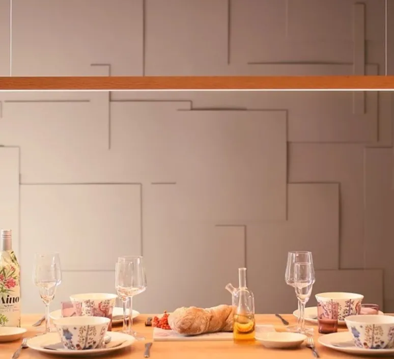 Dans la plus pure tradition scandinave, ce bandeau lumineux mêle la douceur du bois et un éclairage agréable, non éblouissant et économique à la technologie LED. L’univers Tunto s’inspire du bois, de sa noblesse, de ses tons doux et suaves, de ses veines ; et en le travaillant en finesses, Tunto propose des luminaires contemporains, naturels et épurés. La suspension LED40 est parfaite pour suspendre au-dessus d’une table à manger ou d’un bureau.