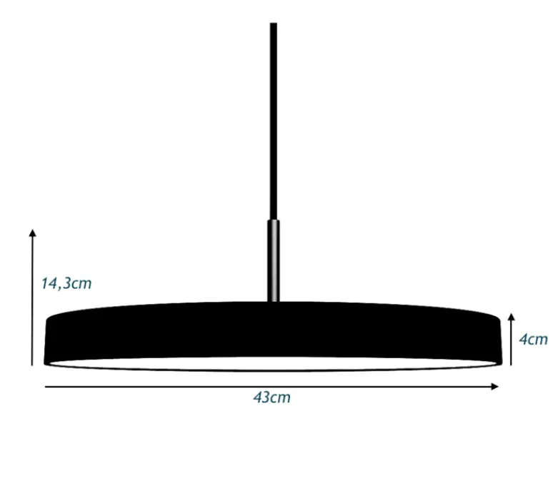 La suspension mesure 43cm de diamètre pour une hauteur de 14,3cm.
