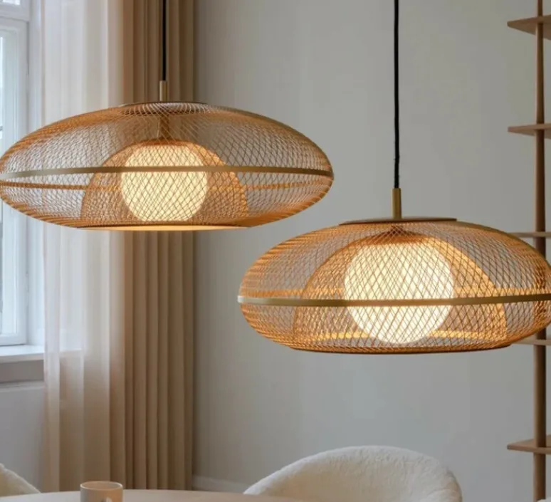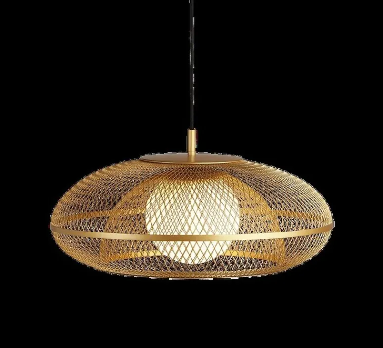 Le même maillage en acier caractéristique que celui de la cage compose l’ensemble de la suspension. Le bouclier en acier de l’abat-jour Faraday capte parfaitement la lumière du globe en verre opale et crée une lumière ambiante envoûtante.