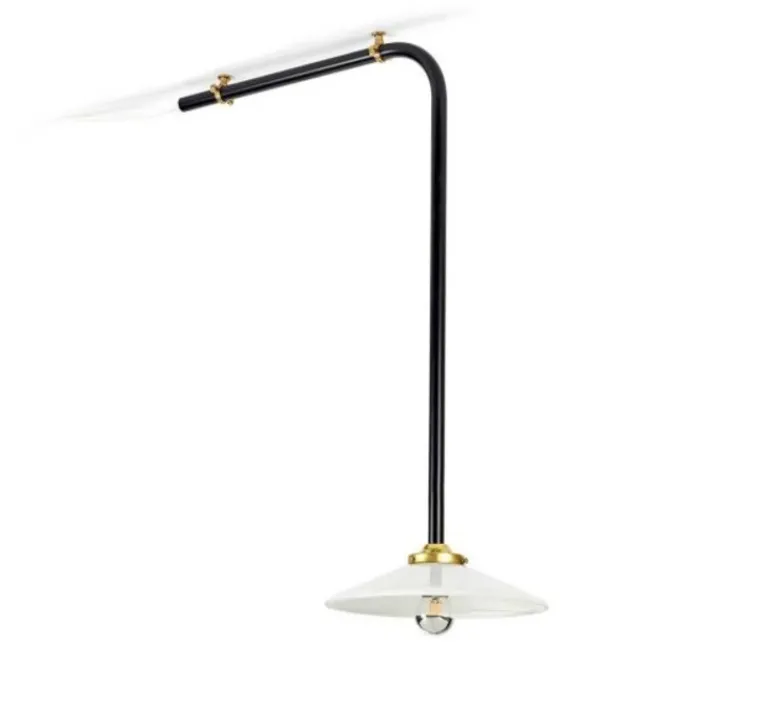 Le design de cette lampe est d’une simplicité presque naïve, et pourtant, les lignes qui la compose remplissent l’espace de manière ludique et colorée. Le plafonnier n°3 est composé d’un tube en acier noir courbé et d’un abat-jour blanc qui, selon Hannes Van Severen, « a une forme fantastique : parfaitement neutre ».