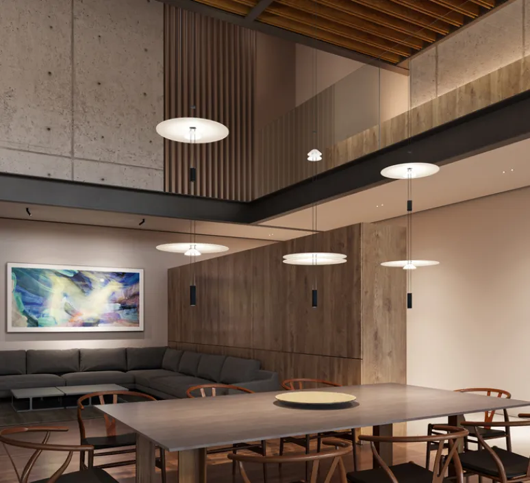 La collection Flamingo Mini façonne des silhouettes multicouches dotées d’une esthétique avant-gardiste et intrigante. Cette suspension lumineuse évoque l’image d’un oiseau planant au-dessus, créant une ambiance intime en diffusant des gradations de lumière apaisante à travers son diffuseur translucide. Son design déconstruit divise une source lumineuse LED et des couches de diffuseurs translucides, créant ainsi des nuances douces d’illumination. Les diffuseurs offrent diverses configurations, chaque LED agissant comme un projecteur dirigé vers le haut ou vers le bas pour produire un effet d’ambiance.