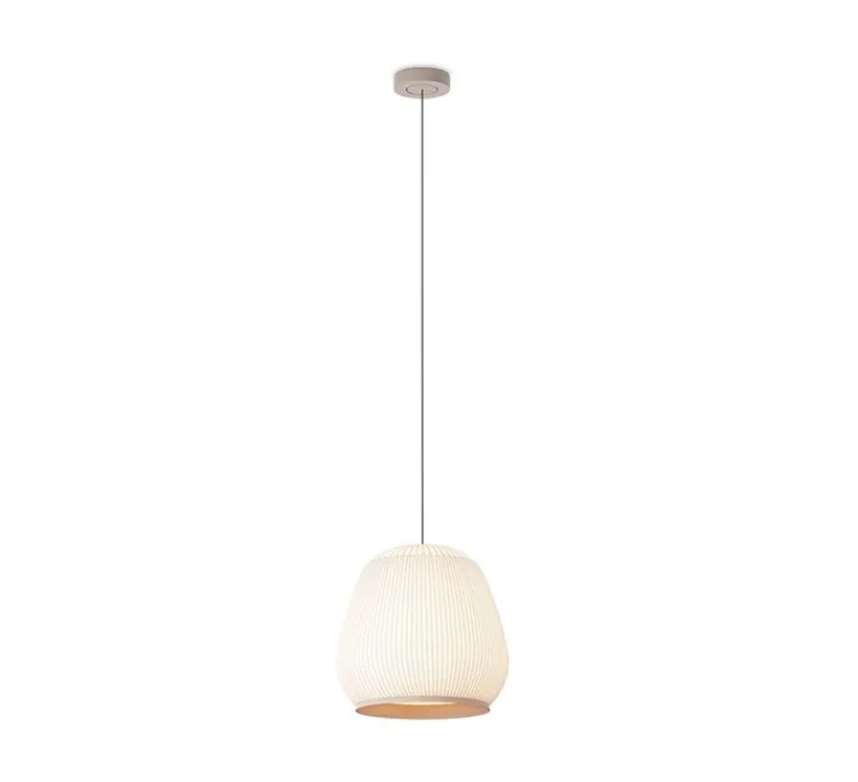 Découvrez la suspension Knit 7450, finition beige, imaginée par la designer Meike Harde pour la maison espagnole Vibia.