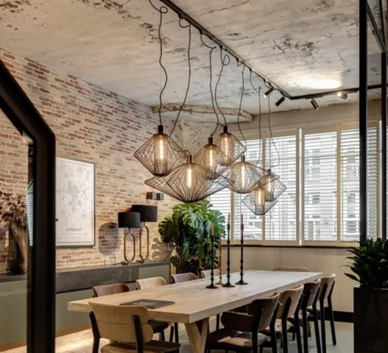 A la fois plus anguleuse mais aux inspirations plus précieuses, la suspension Wiro conserve sons tyle étonnant et industriel. Grâce à son design ajouré, ce luminaire reste discret pour s’adapter à tous les intérieurs.