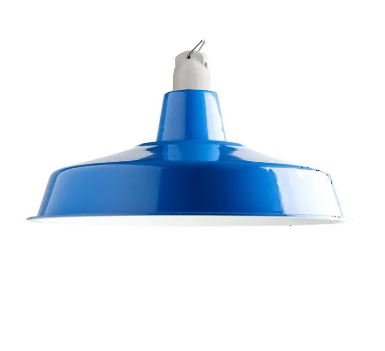 La suspension Atelier coloris bleu, de 40cm de diamètre en émail est à personnaliser. A vous de choisir la longueur et couleur de câble textile de votre choix. Le prix de la lampe à gamelle émaillée n’inclut ni l’ampoule, ni la rosace, ni le fil électrique. N’oubliez pas de faire le choix de l’ampoule, de la rosace et du câble dans les produits associés.