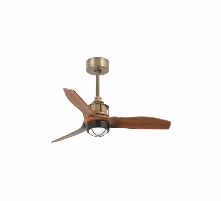 La Just Fan XS en or vieilli/bois est la petite version de la collection Just Fan. Avec un diamètre de 81cm, ce ventilateur s’adapte parfaitement à des espaces inférieures à 13m². De plus, vous retrouvez également une ampoule LED intégrée dans un verre opalin, offrant ainsi une diffusion lumineuse indirecte et douce. Just Fan XS est actionnable à distance grâce à une télécommande et offre 6 niveaux de vitesses réglables.